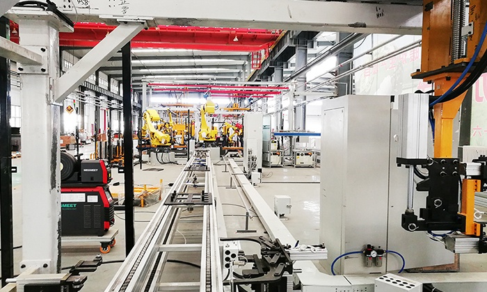 鋁合金集裝箱智能生產線包含側箱縱焊縫龍門專機、邊板龍門焊接專機、定位裝置、物流輸送線、激光跟蹤系統、焊接平臺、組對工裝、邊梁龍門架焊接專機及控制系統、焊接電源、煙塵凈化系統等部分構成。