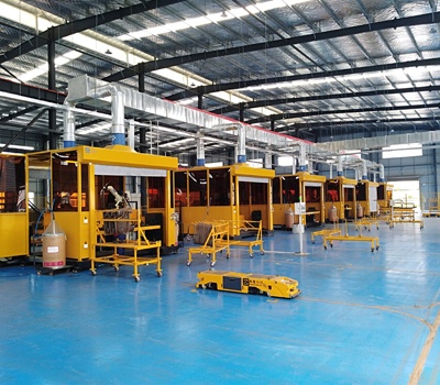 該項目運用24臺工業焊接機器人、12套工作站、2臺全自動激光切割機、2臺全自動沖弧口機、3臺自動切管機、4套智能AGV小車物流搬運系統、5臺自動彎管機、抽煙除塵系統、雙氣路集中供氣系統、可視化管理系統及中樞集中控制系統。